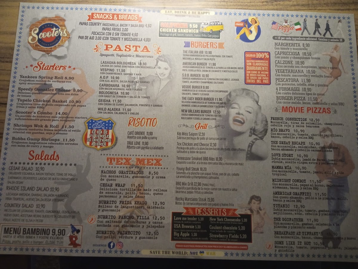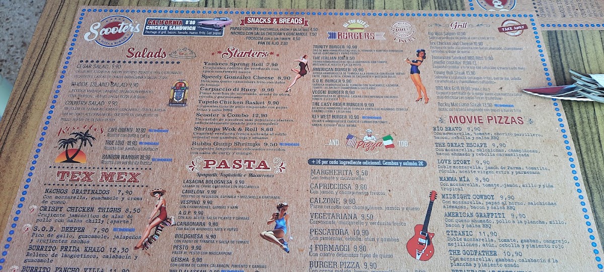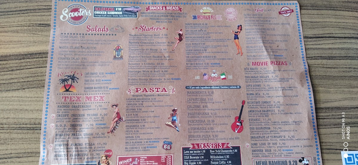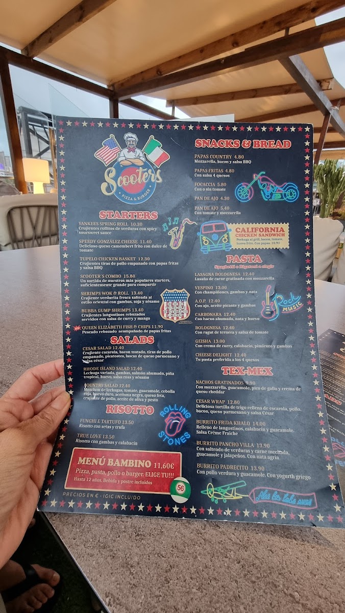Scooter's doesn't skimp on variety—a perfect gathering place for families and friends. Their enticing salads varied from the fresh Rhode Island Salad to the hearty César Salad at €13.64 each, ensure everyone finds something enjoyable. The inviting atmosphere, combined with friendly service, makes it an ideal stop for a quick bite or a leisurely meal after shopping. Come experience the delicious offerings at Scooter's Las Arenas!