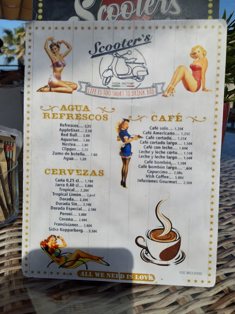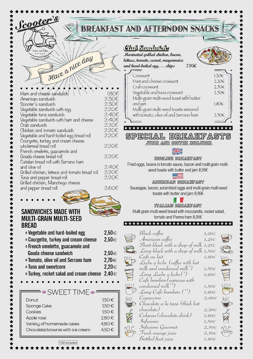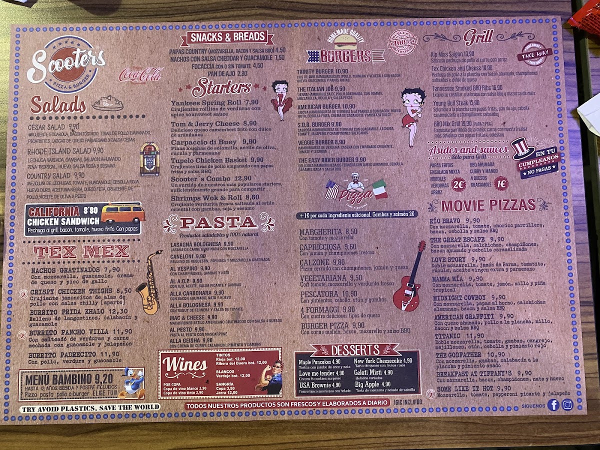 Scooter's doesn't skimp on variety—a perfect gathering place for families and friends. Their enticing salads varied from the fresh Rhode Island Salad to the hearty César Salad at €13.64 each, ensure everyone finds something enjoyable. The inviting atmosphere, combined with friendly service, makes it an ideal stop for a quick bite or a leisurely meal after shopping. Come experience the delicious offerings at Scooter's Las Arenas!